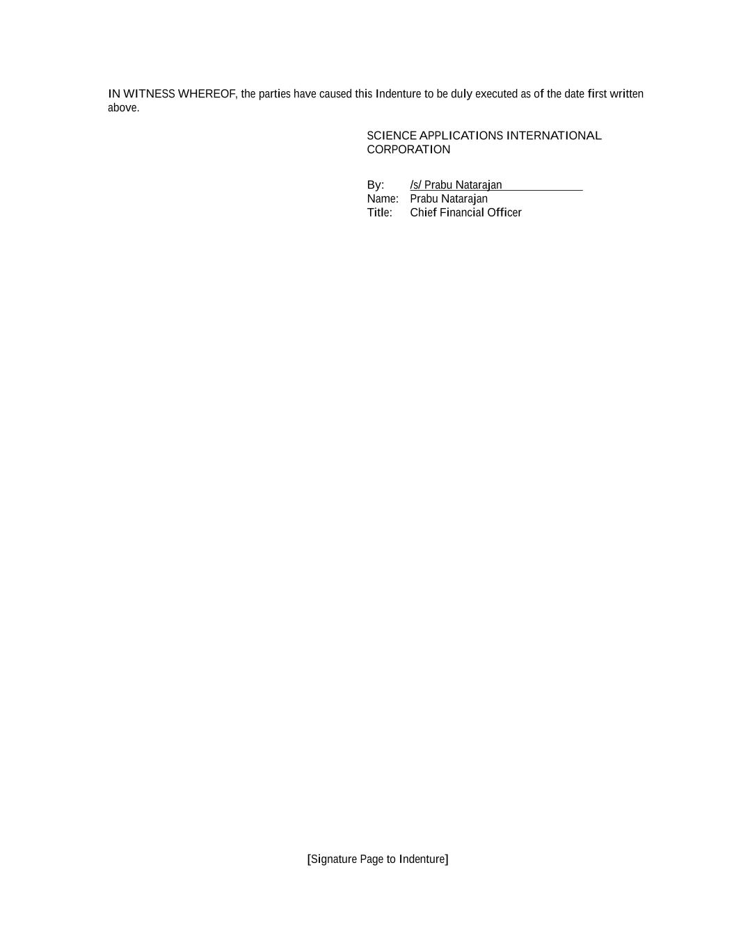 [Signature Page to Indenture] IN WITNESS WHEREOF, the parties have caused this Indenture to be duly executed as of the date first written above. SCIENCE APPLICATIONS INTERNATIONAL CORPORATION By: /s/ Prabu Natarajan Name: Prabu Natarajan Title: Chief Financial Officer