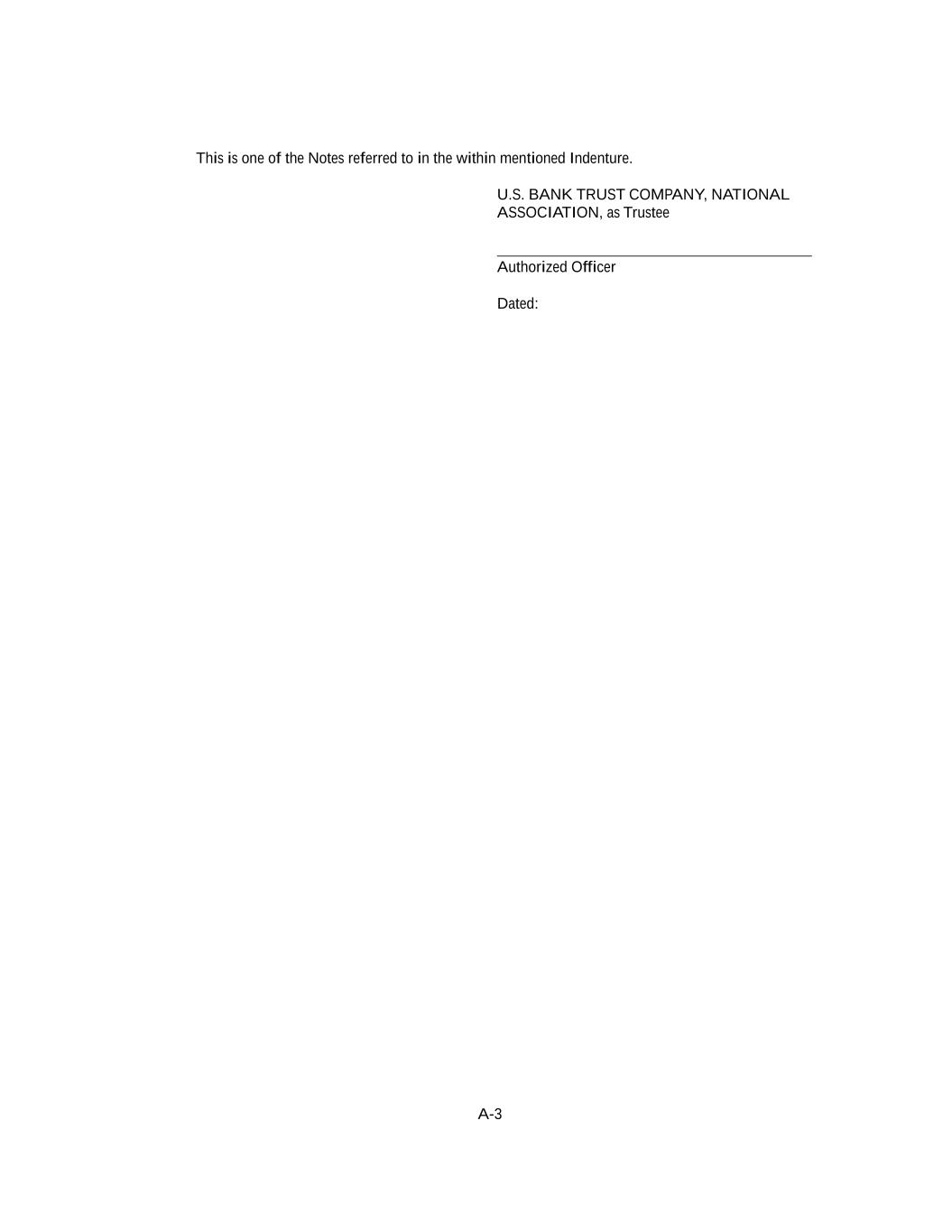 A-3 This is one of the Notes referred to in the within mentioned Indenture. U.S. BANK TRUST COMPANY, NATIONAL ASSOCIATION, as Trustee Authorized Officer Dated: